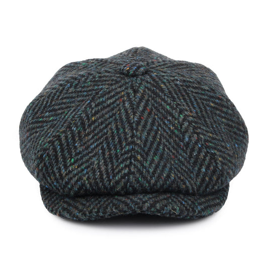 Jaxon & James Glencoagh Heavyweight Donegal Tweed Ballonmütze mit Fischgrätmuster - Schwarz-Anthrazit