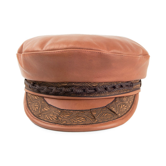 Jaxon & James Griechische FIschermannsmütze aus Mattem Leder - Hellbraun