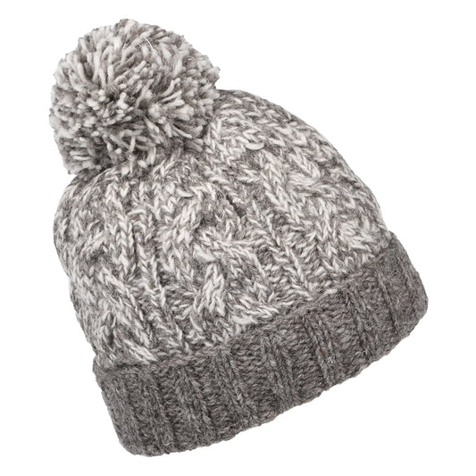 Kusan Schneeflocke Turn Up Bommelmütze - Grau-Creme