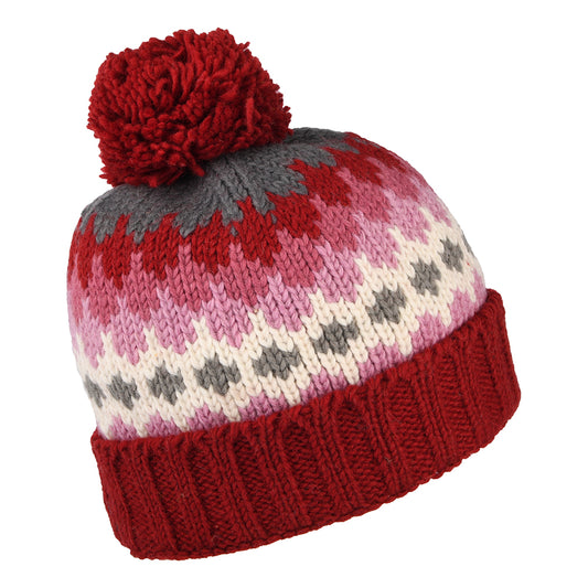 Kusan Schneeflocke Turn Up Bommelmütze - Marineblau-Weinrot
