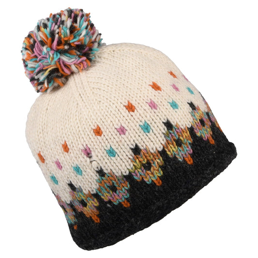 Kusan Regenbogen Garn Bommelmütze mit Perlmuster - Cremefarben-Multi