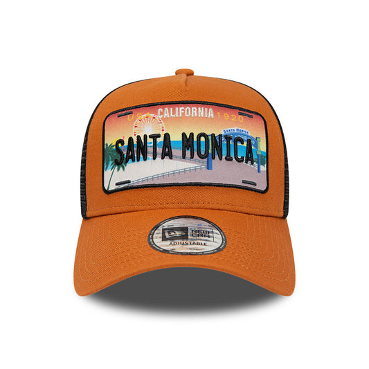 New Era 9FORTY A-Frame Santa Monica Trucker Cap - License Plate - Toffee-Schwarz