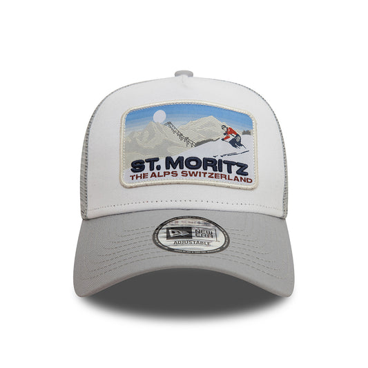 New Era A-Frame St. Moritz Trucker Cap - Ski Patch - Grau-Weiß