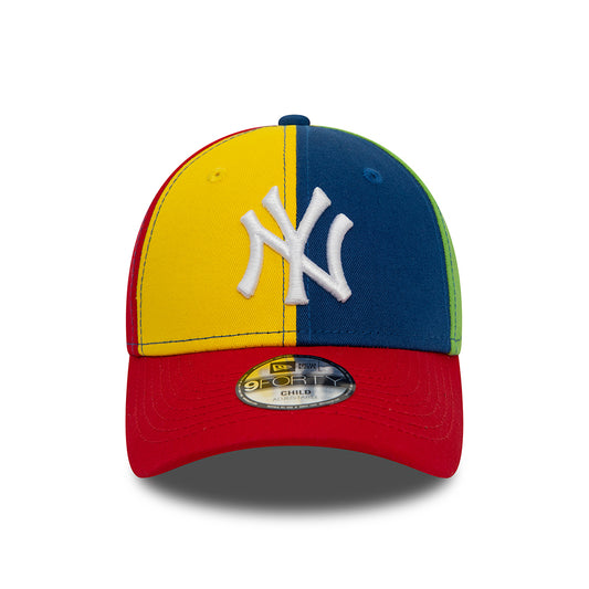 New Era Kinder 9FORTY New York Yankees Baseball Cap - MLB Block - Marineblau-Gelb-Rot