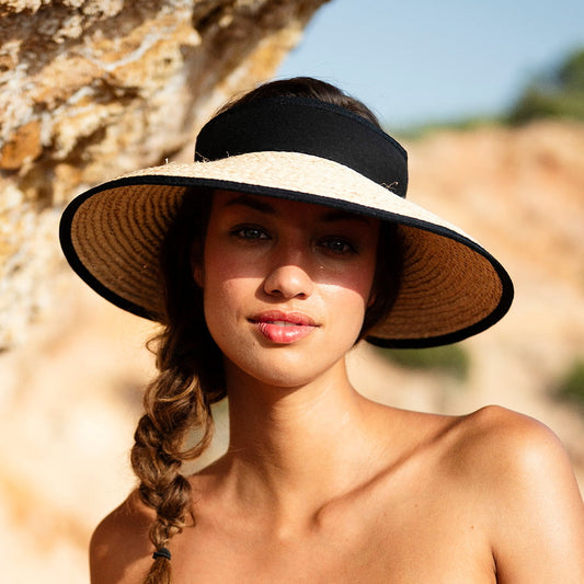 Barts Tambou mit erweiterter Krempe Sonnenschild aus Raffia Stroh - Schwarz