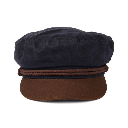 Brixton Schiffermütze aus gewachster Baumwolle - Marineblau-Braun