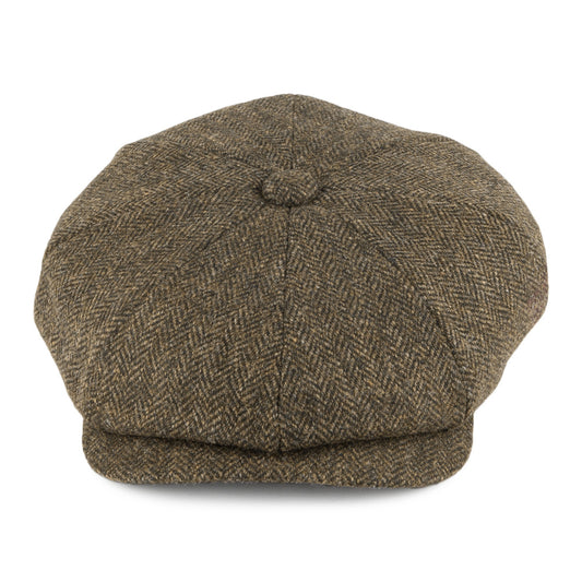 Christys Country Tweed Tweed Ballonmütze mit Fischgrätmuster - Olivgrün