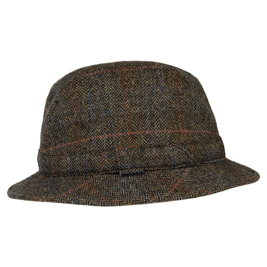 City Sport Packbarer HARRIS TWEED Trilby Hut mit Fischgrätmuster - Marineblau