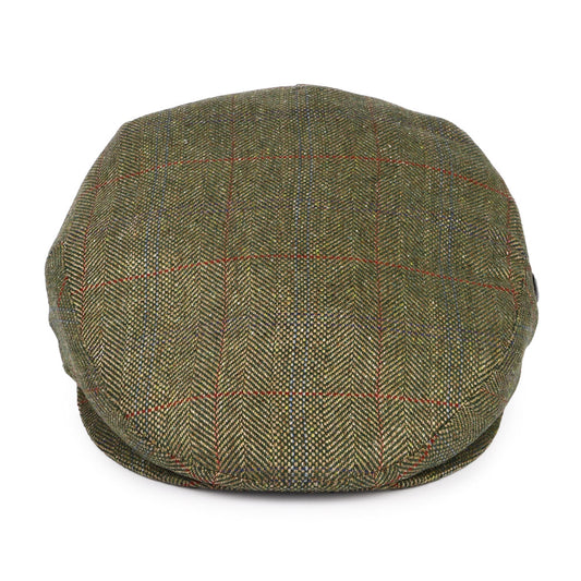 City Sport Schiebermütze Fensterscheiben-Fischgrätmuster aus reiner Seide - Olivgrün
