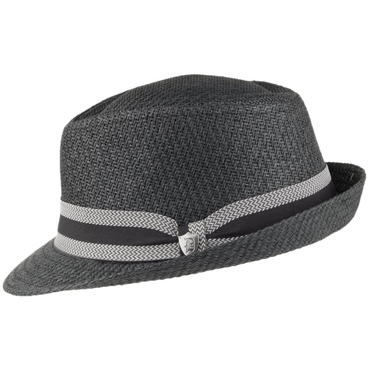 Dorfman Pacific Trilby Hut aus Mattem Toyostroh mit gestreiftem Band - Schwarz
