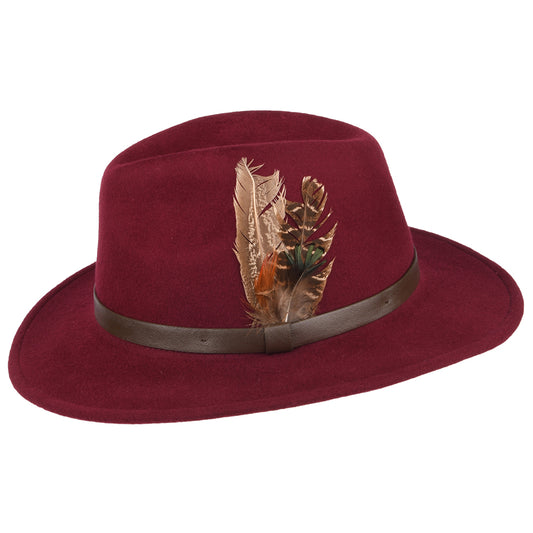 Failsworth Cheltenham Wasserabweisender Fedora Hut aus Wollfilz - Merlot