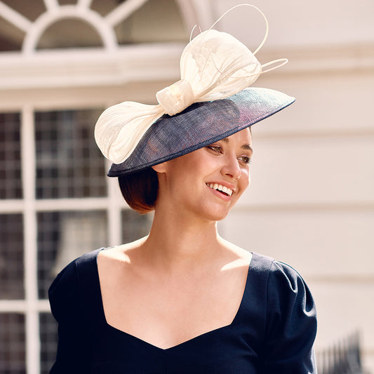 Failsworth Claire Hochzeits-Hatinator mit grosser Schleife - Marineblau-Elfenbeinfarben