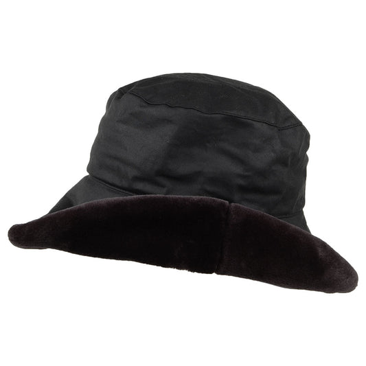Failsworth Fischerhut Wax Cotton mit Kunstfell-Borte - Schwarz