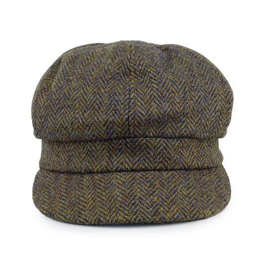 Failsworth Gabby HARRIS TWEED Bakerboy Ballonmütze mit Fischgrätmuster - Olivgrün-Multi