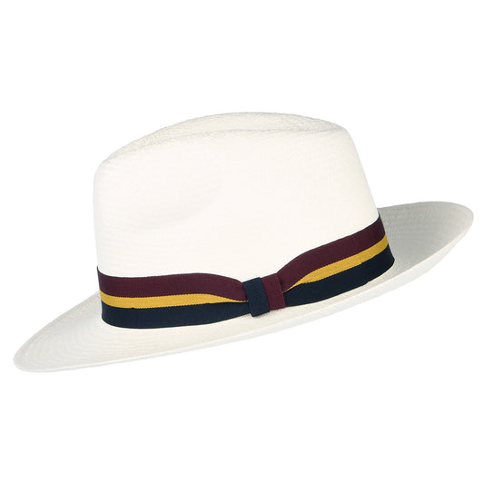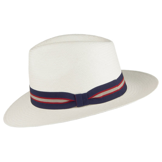 Failsworth Regimental Panama Fedora Hut und Marineblauem Hutband - Perlweiß