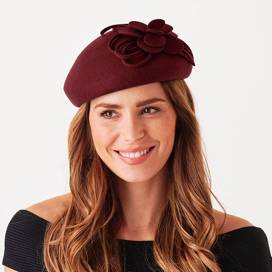Failsworth Marina Blocked Baskenmütze aus Wollfilz - Weinrot
