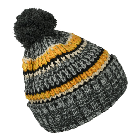 Barts Goser Recycled Bommelmütze gestreift - Meliertes Dunkelgrau