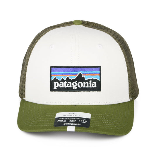 Patagonia P-6 Logo Trucker Cap aus organischer Baumwolle - Weiß-Grün