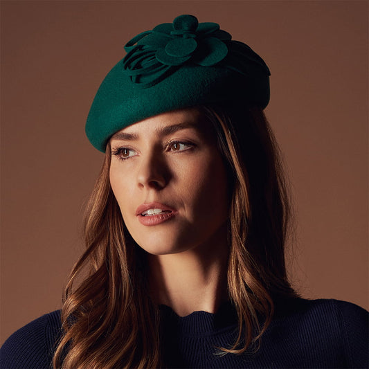 Failsworth Marina Blocked Baskenmütze aus Wollfilz - Smaragdgrün