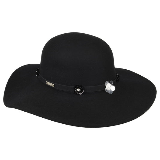 Seeberger Blumen Schlapphut aus Wollfilz - Schwarz