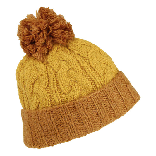 Kusan 2-Tone Turn Up Bommelmütze mit Zopfstrickmuster - Senfgelb