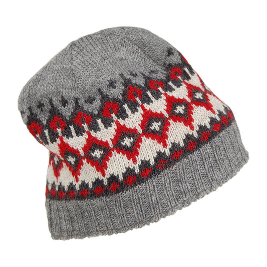 Kusan Beanie Mütze Fine Gauge im Feinstrickmuster - Grau-Rot