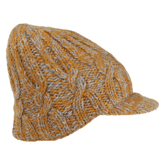 Kusan Beanie Mütze mit Visier im Zopfstrickmuster - Karamell