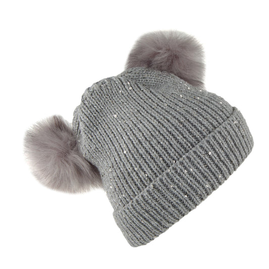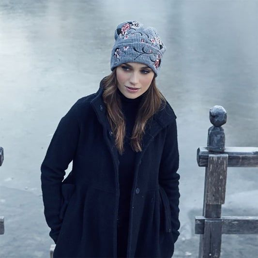 Seeberger Bestickte Blumen Beanie Mütze - Grau