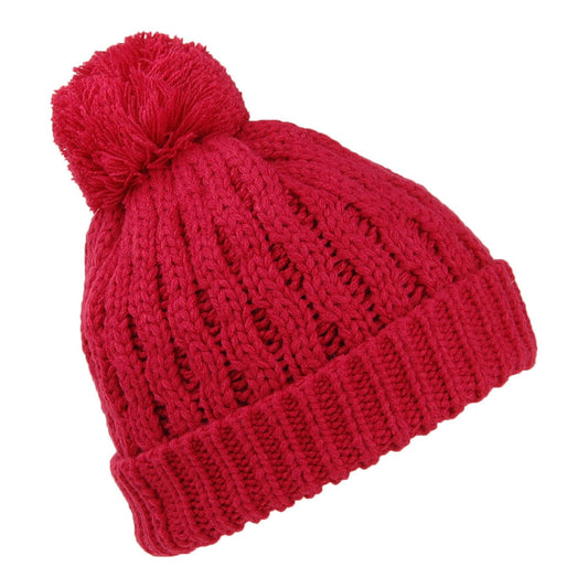 Joules Kunstfell Bommelmütze mit feinem Zopfstrickmuster - Pink