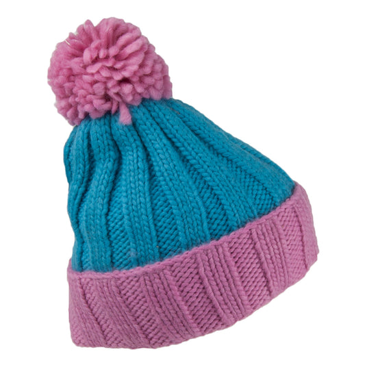 Kusan Turn Up Gerippte Bommelmütze - Pink-Blau