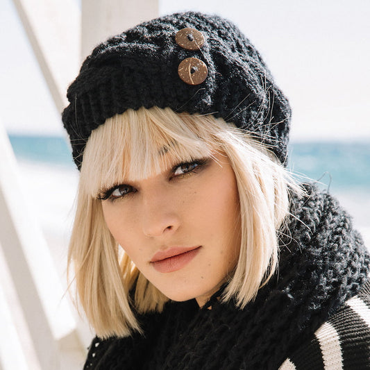 Scala Emilia Knopf Beanie Mütze - Schwarz