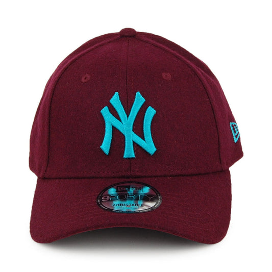 New Era 9FORTY New York Yankees Baseball Cap - MLB Melton - Burgunderrot-Petrol
