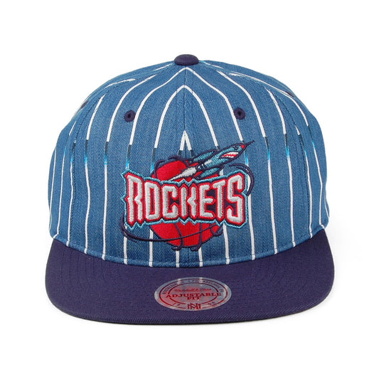 Mitchell & Ness Houston Rockets Snapback Cap - Denim Pinstripe - Marineblau