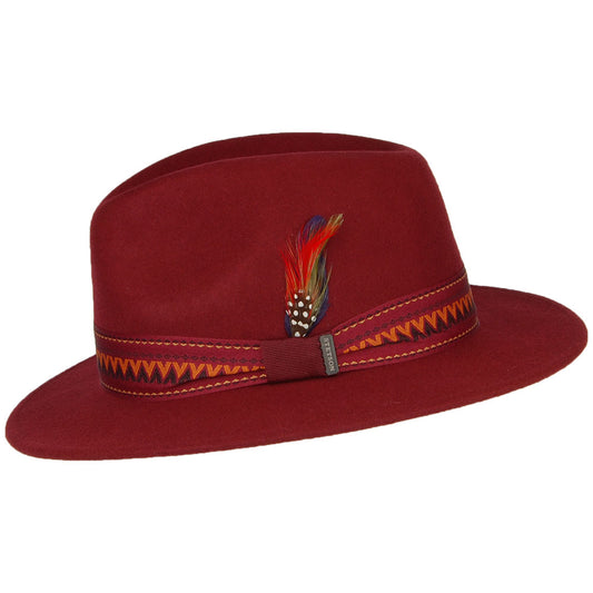 Stetson Aztek Fedora Hut aus Wollfilz - Burgunderrot