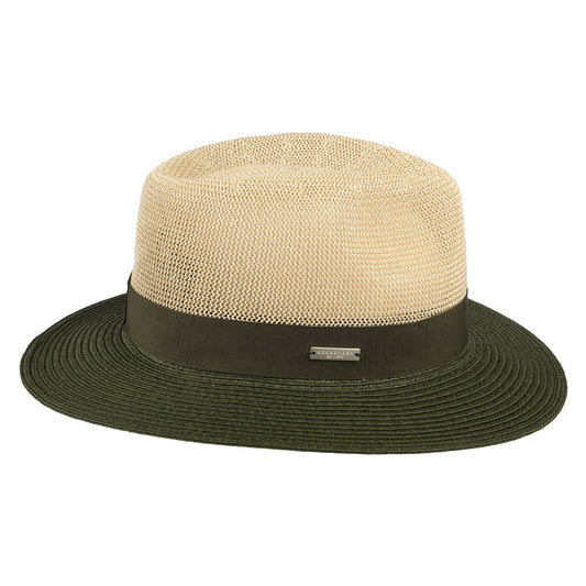 Seeberger Two Tone Fedora Hut aus Toyo Stroh - Natur-Olivgrün