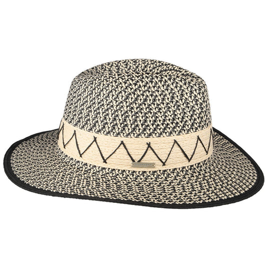 Seeberger Fedora Hut ZickZack aus Toyo Stroh - Natur-Schwarz
