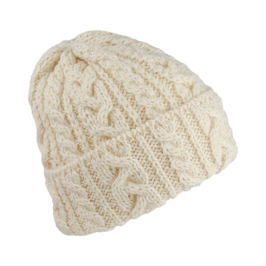 Highland 2000 Kabelstrick Beanie Mütze mit Umschlag - Natur