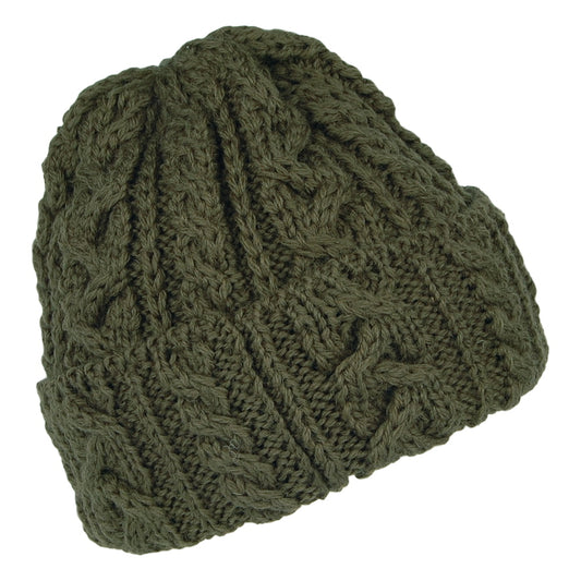 Highland 2000 Kabelstrick Beanie Mütze mit Umschlag - Olivgrün