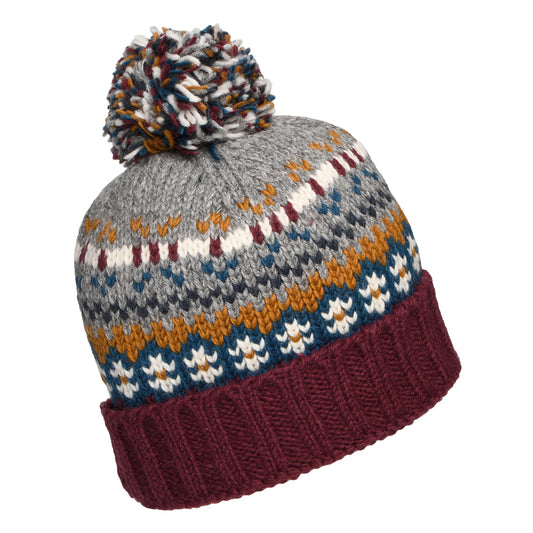 Kusan Mosaic Bommelmütze Fair Isle - Pflaume-Grau