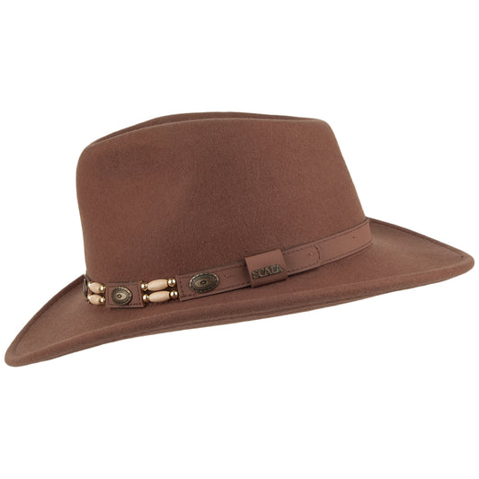 Scala Knautschbarer Wasserabweisende Outback Hut aus Wollfilz mit Ohrenklappen - Khaki
