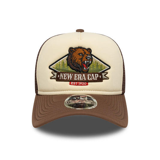 New Era 9FORTY M-Crown A-Frame Trucker Cap - NE Graphic - Cremefarben-Schokolade