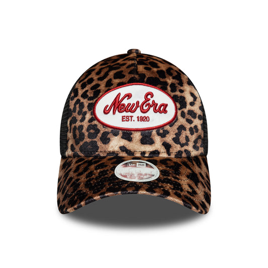 New Era Damen 9FORTY M-Crown A-Frame Trucker Cap - NE Leopard - Hellbraun-Schwarz