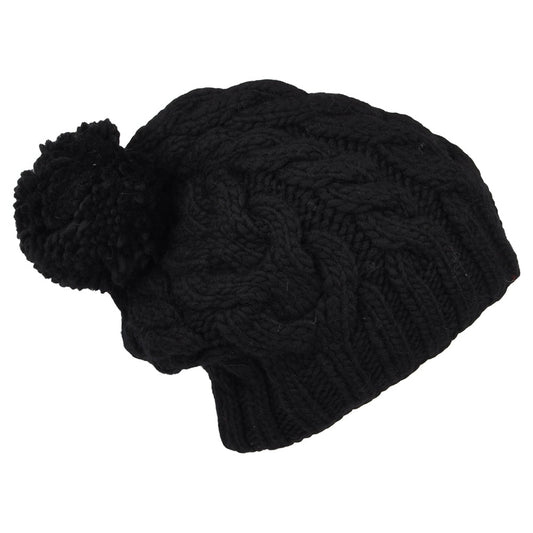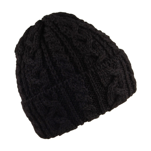 Highland 2000 Kabelstrick Beanie Mütze mit Umschlag - Schwarz