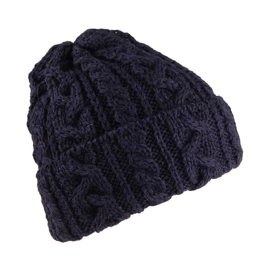 Highland 2000 Kabelstrick Beanie Mütze mit Umschlag - Marineblau