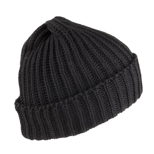 Highland 2000 Short Fisherman Beanie Mütze aus Merinowolle - Schwarz