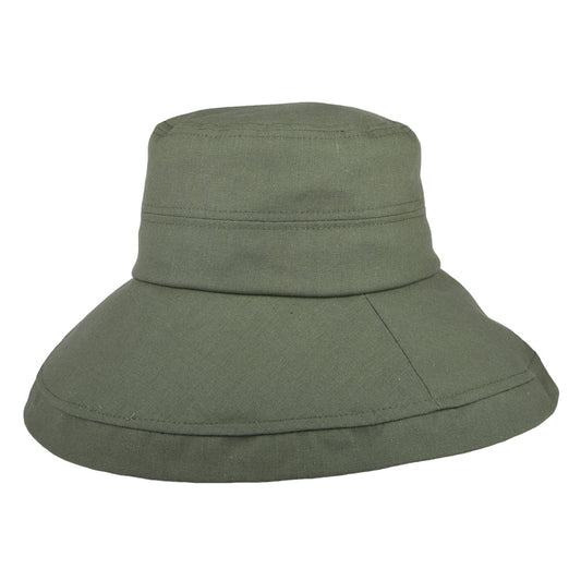 sur la tête Lily Packbarer Sonnenhut aus Leinen-Baumwolle Olivgrün Großhandel