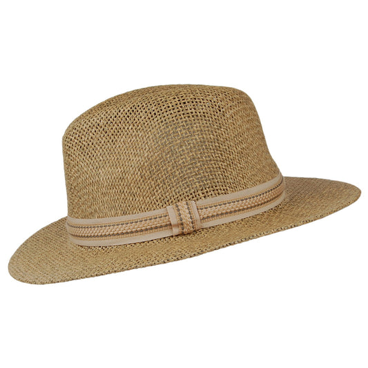 Dorfman Pacific Latitude Safari Fedora Hut Matte aus Toyo-Stroh - Natur