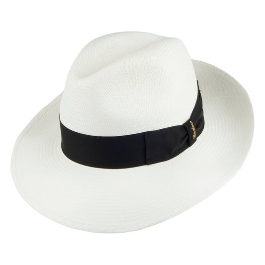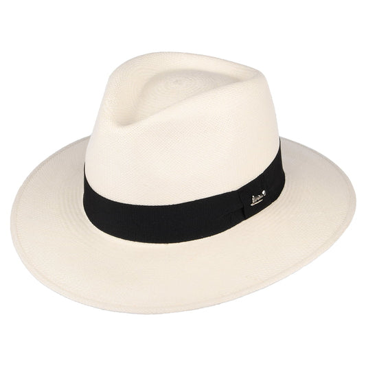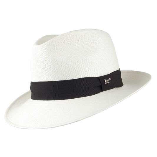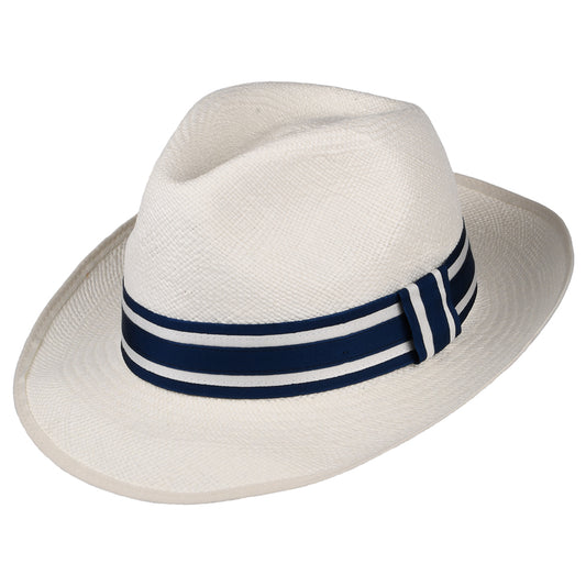 Christys Ascot Striatus Preset Panama Fedora Hut mit gestreiftem Band - Perlweiß