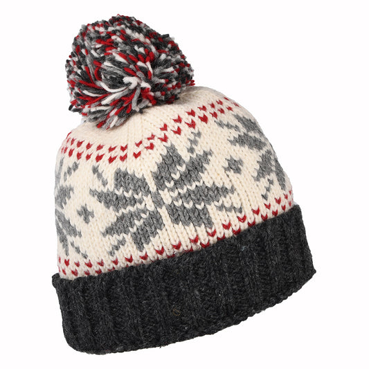 Kusan Mosaic Bommelmütze Fair Isle - Marineblau-Rot-Creme