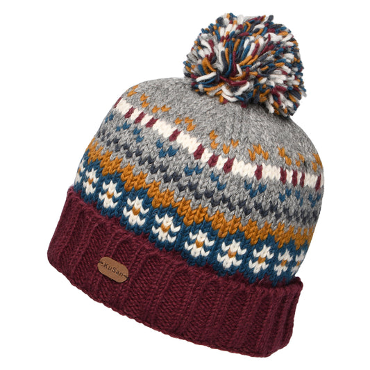 Kusan Turn Up Bommelmütze Fair Isle - Kastanienbraun